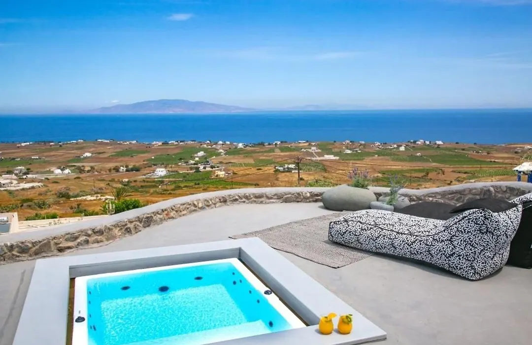 Luxury Santorini Villa Villa Elysian Dyo Private Hot Tub Air Conditioning Foinikiá est situé à environ 25 minutes de marche du Château d'Oia et offre une piscine, garantissant un séjour relaxant. Cette villa de Foinikiá offre à ses clients une expérience relaxante avec un jacuzzi.